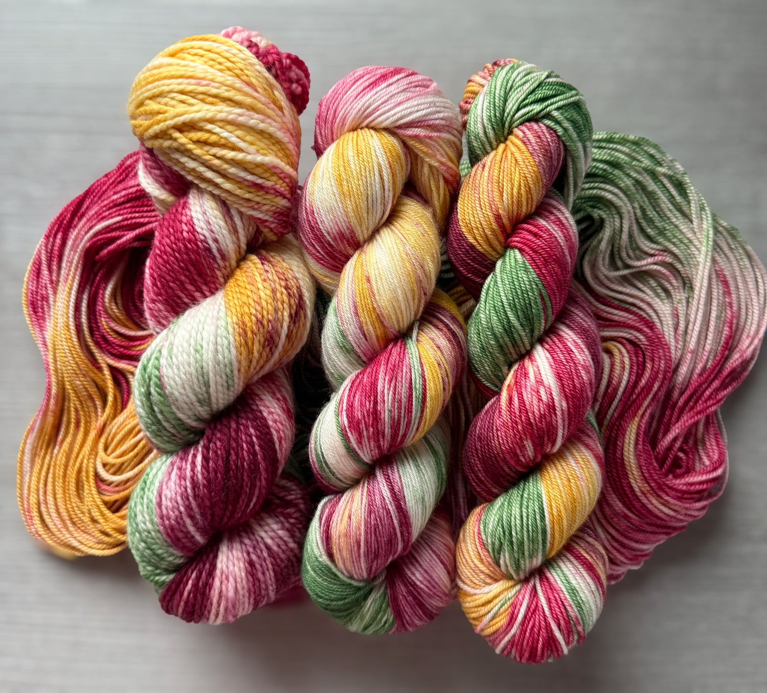 If you don't see the availability of the number of skeins you require for your project, please shoot us a message! We are more than happy to do custom orders and satsify your yarn addiction :)