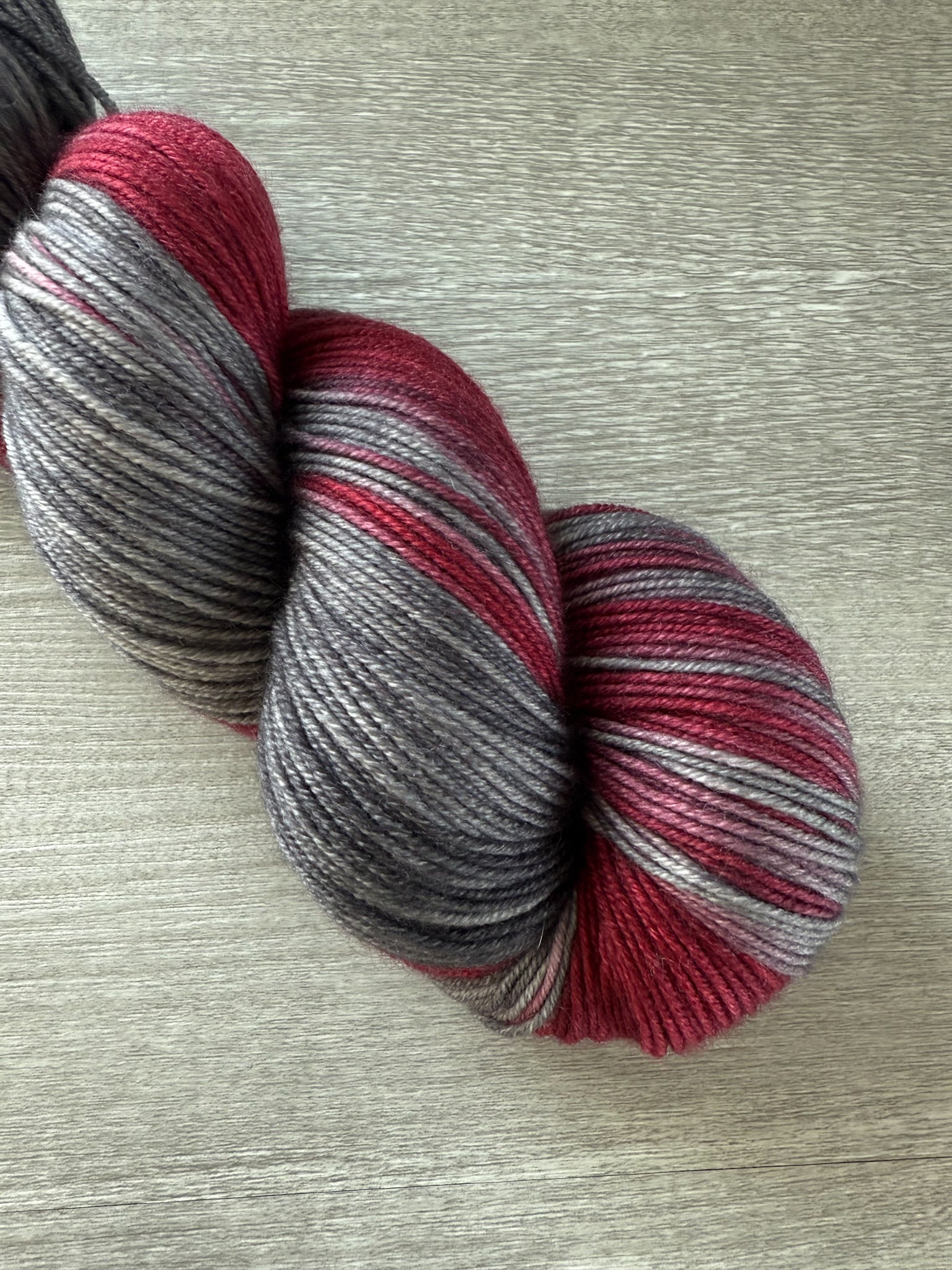 Take your knitting to the next level with our Cold Hearted Artisan Hand Dyed Merino Wool Yarn! As bold as an evil queen, this yarn boasts a bright red hue, contrasted by deep charcoal tones. Let your creativity run wild with this striking and daring yarn.