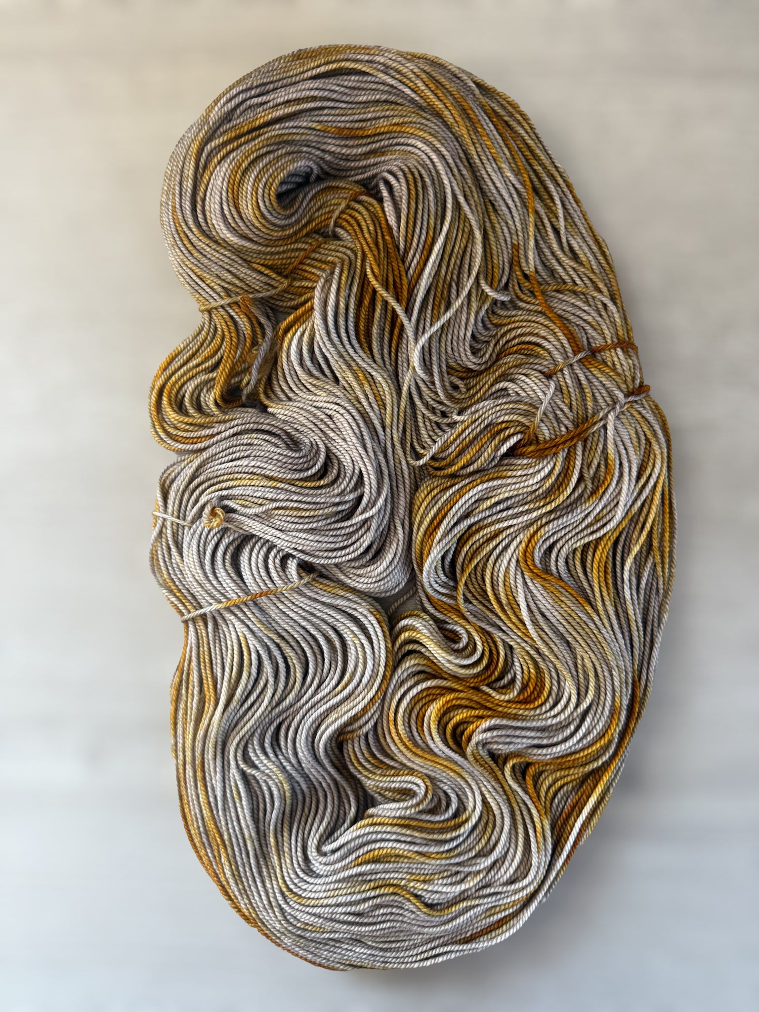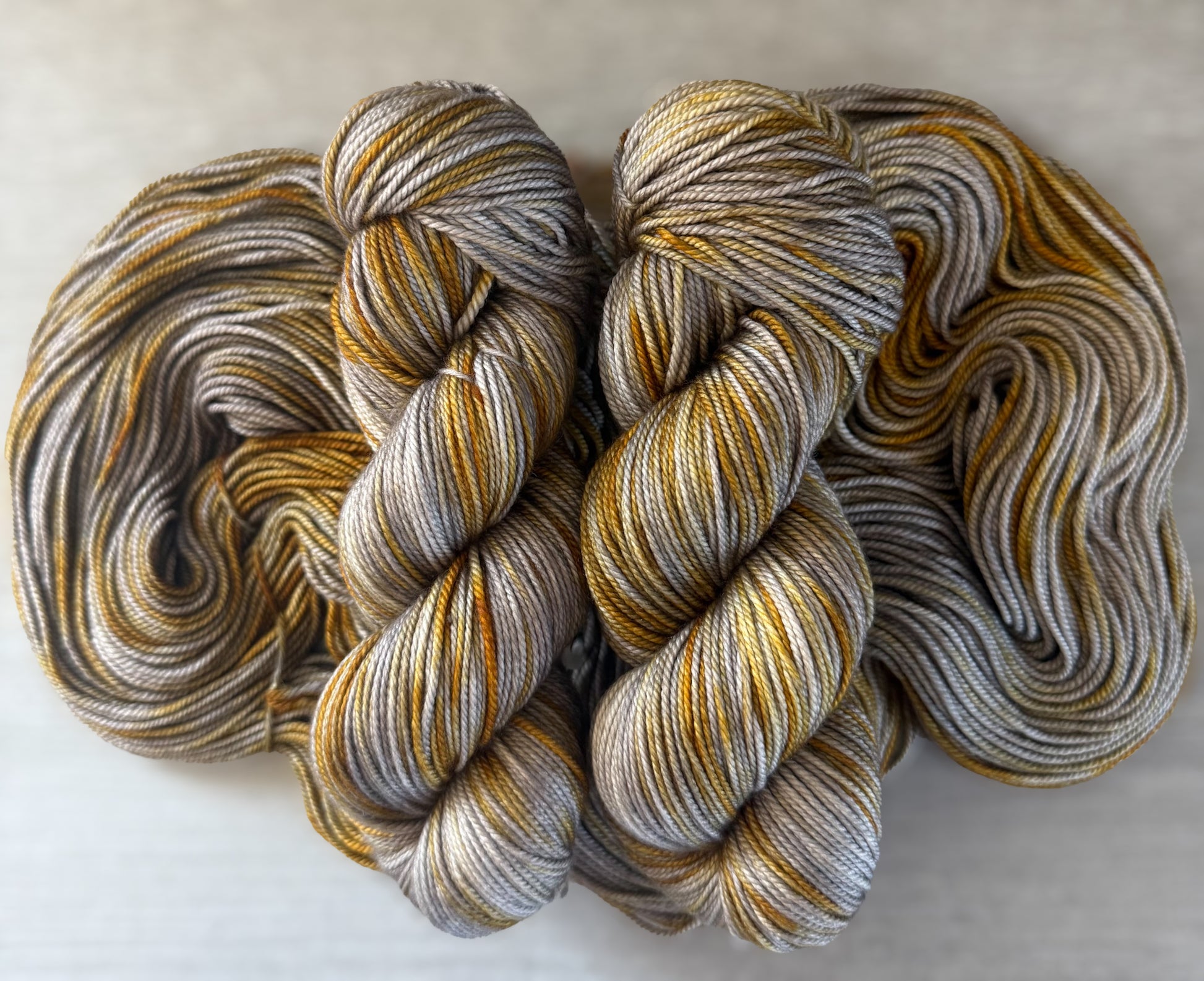 Indulge in luxury with our Colonel Dijon Artisan Hand Dyed Merino Wool Yarn. Inspired by the richness of mustard yellows, accented with tonal grays and soft browns. Made with the finest quality merino wool, perfect for creating elegant and sophisticated pieces. Upgrade your knitting or crochet projects with this exclusive yarn.
