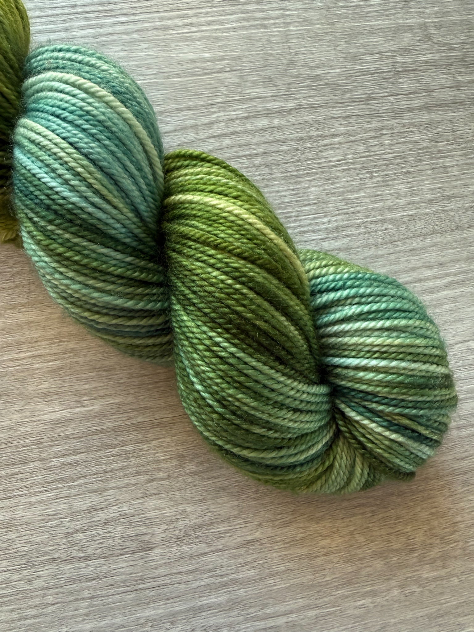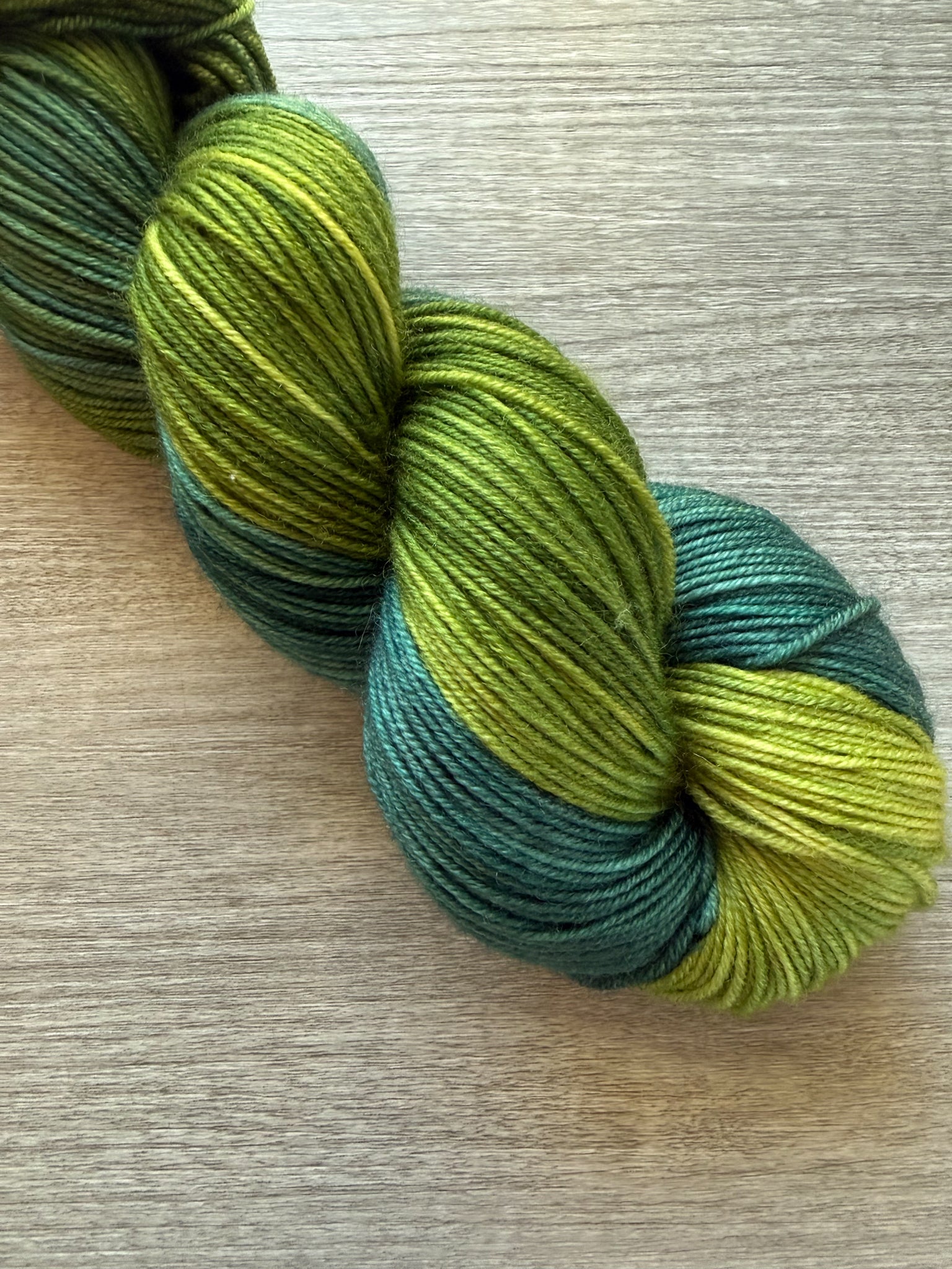 Hug A Tree beautifully captures the essence of nature, weaving together multiple shades of deep rich green that transition seamlessly into vibrant chartreuse. Working with this yarn will make you feel like you are connected with nature. This colour way mimics the diverse hues of leaves found on our beloved trees, where each strand reflects the deep, rich tones of the forest floor alongside the lively brightness of sunlit foliage. Wearing a garment made from this yarn feels like enveloping yourself in the warm embrace of a tree, providing comfort and connection to the natural world. The interplay of colors not only adds visual interest but also evokes a sense of tranquility, making every piece a unique expression of nature's artistry.