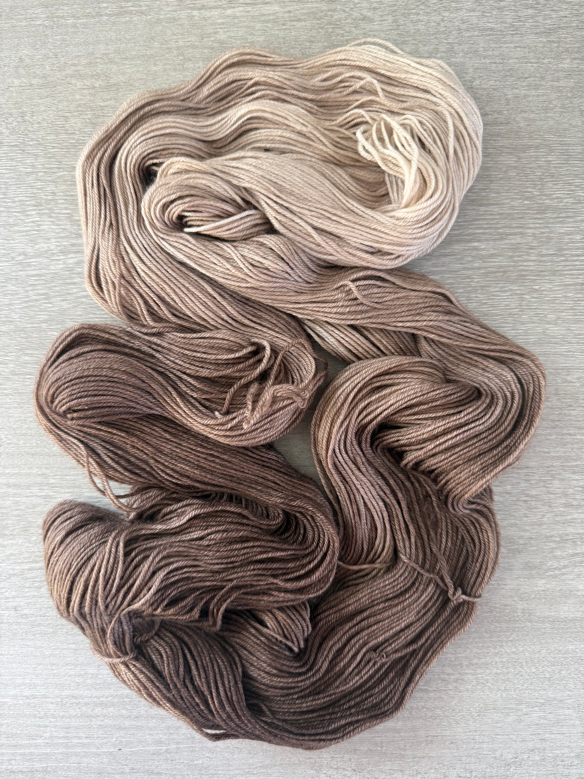 Indulge in the luxurious feel of our “Mocaccino” Artisan Ombre Hand Dyed Merino Wool Yarn. The taupe and rich brown ombre gradient adds a touch of elegance and depth to any project. Handcrafted with care, this yarn is perfect for creating beautiful and unique projects.